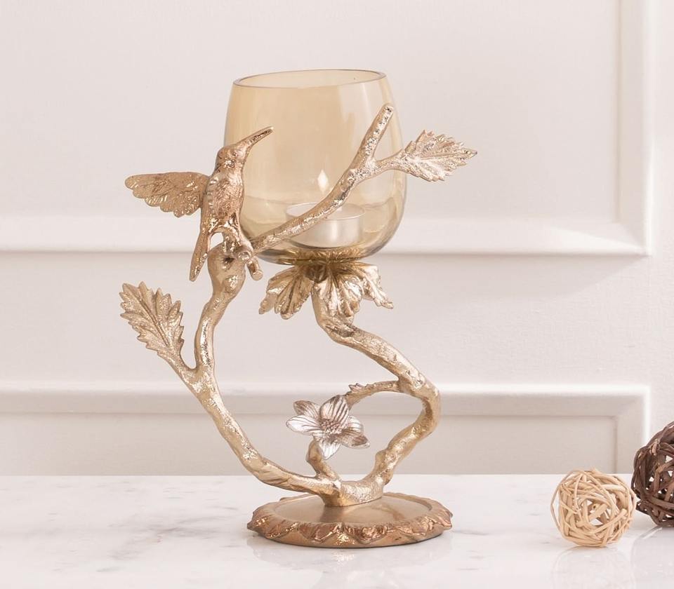 Luxury Golden Glass Aluminium Candle Holder Nature Inspired Sculpture Adds Elegant Warm And Inviting Home Ambiance