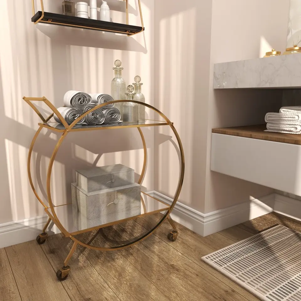 Luxury Golden Ceramic Eco-Friendly Multi-Tier Bar Cart Premium Industrial Utility Trolley Handmade Modern Drinks Butler Cart