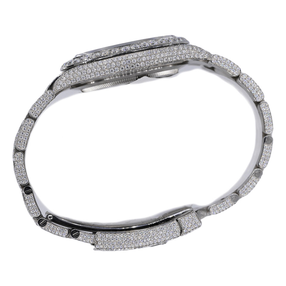 Luxury Grade Strong Quality Moissanite Iced Out Diamond Quartz Movement Stainless Steel Watch Shiny Glass Cover Mens Fashion Use