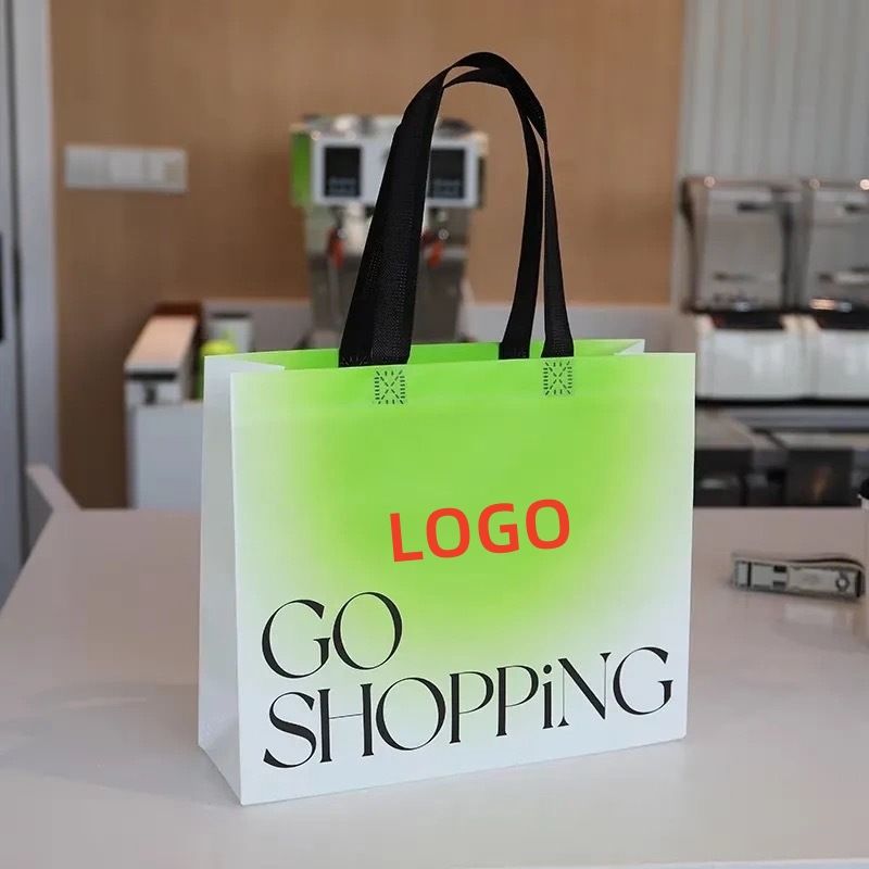 Luxury Gradient Yellow Pink Green Bag Custom Printed LOGO PP Non-Woven Fabric Shopping Tote Bag Reusable & Recycled Shopping Bag