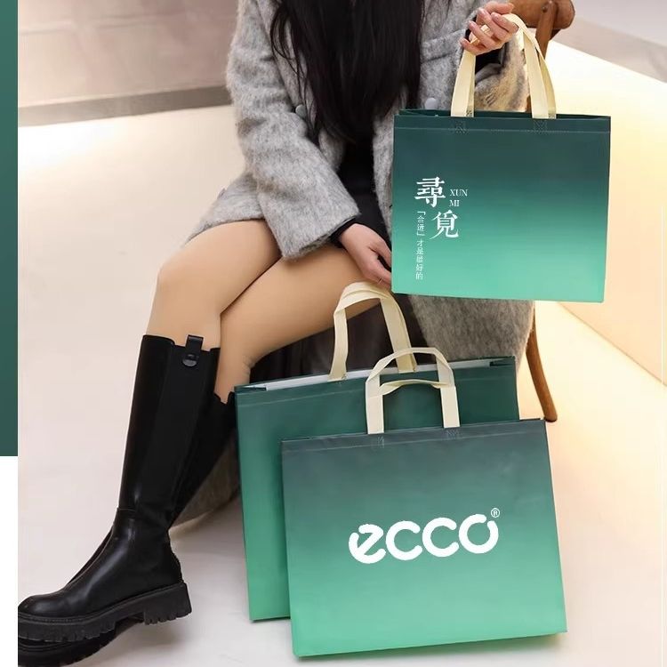 Luxury Gradient pink green Orange Non Woven Fabric Reusable Eco-friendly bag Tote Shopping Handle Bag with Custom Printed logo