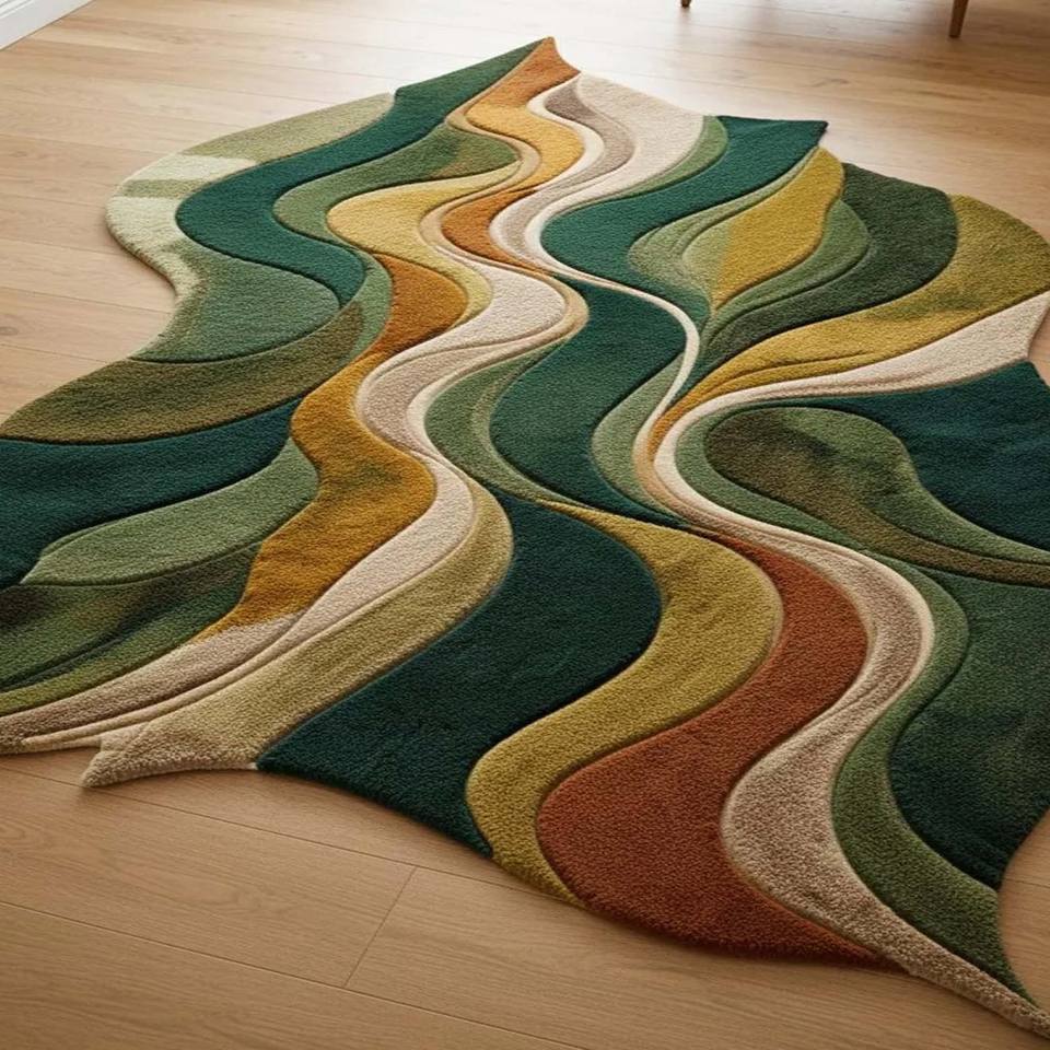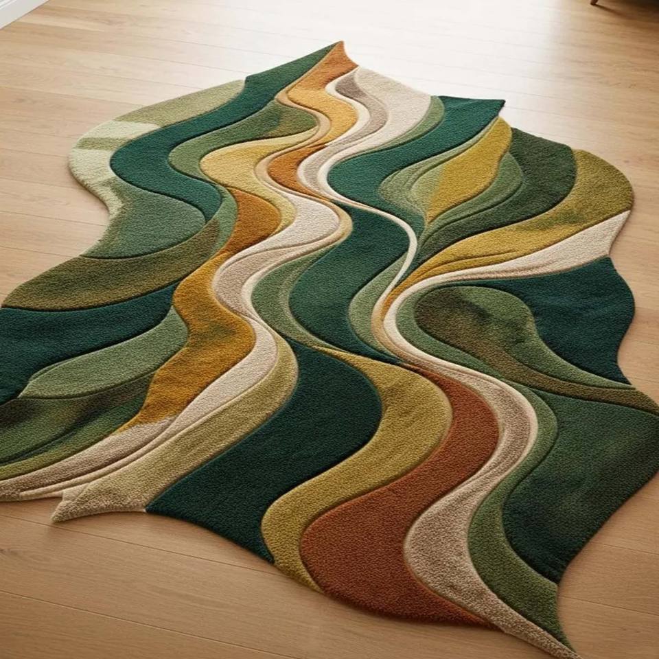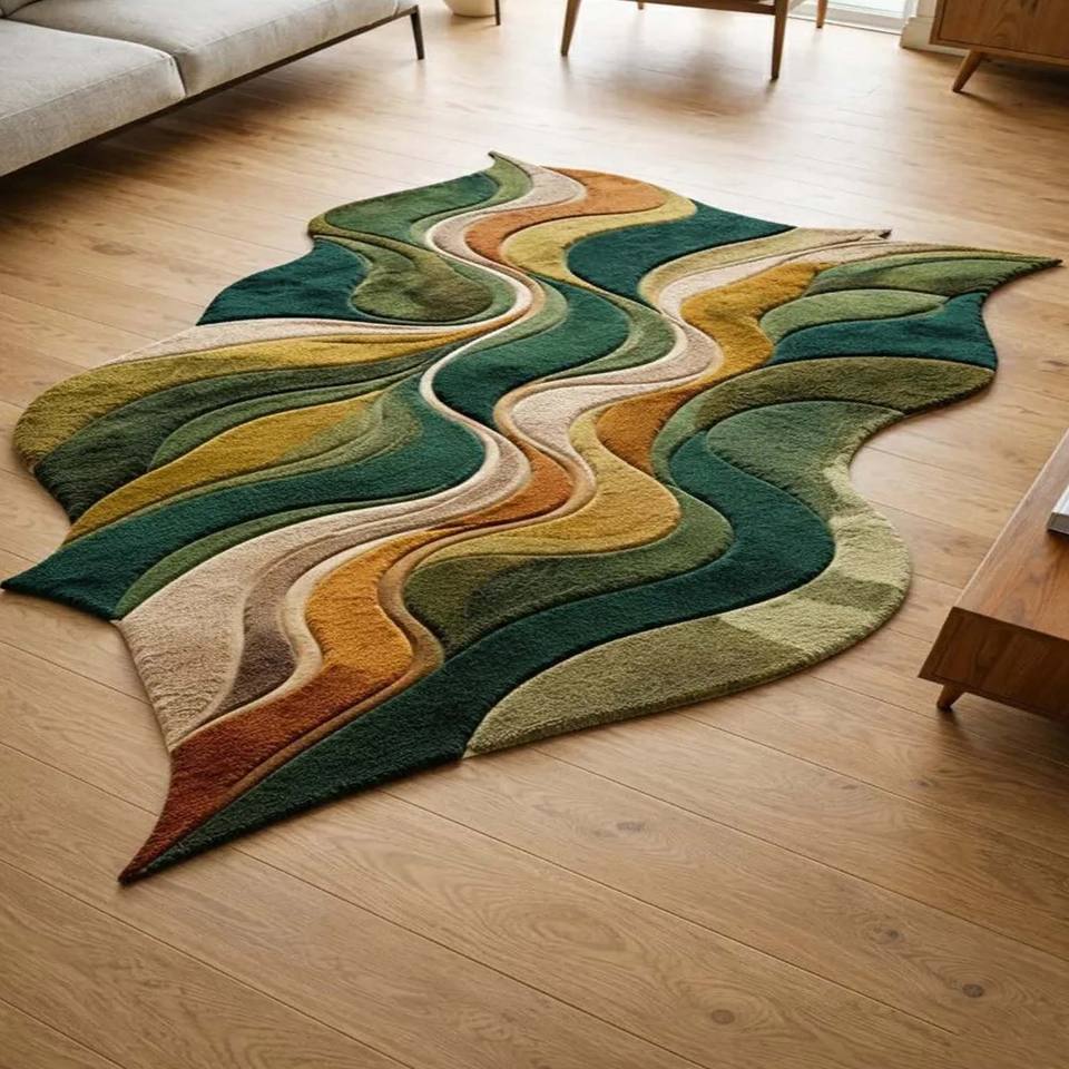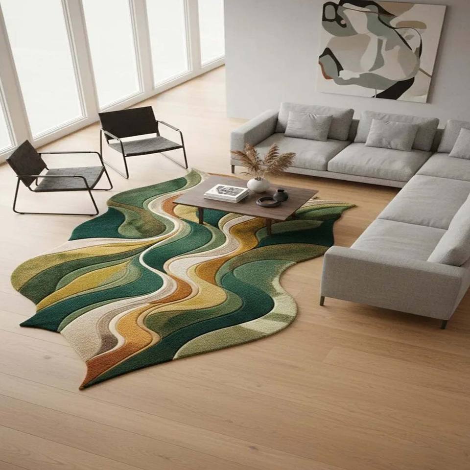 Luxury Green Abstract Area Rug Irregular Tufted Artistic Shape Soft Plush Carpet Modern Living Room Bedroom Home Decor Floor Rug