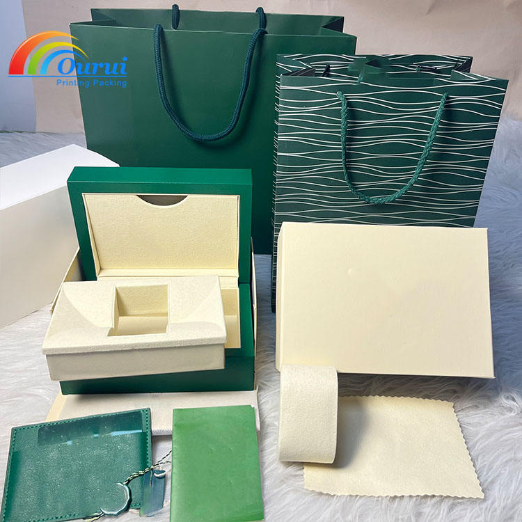 Luxury Green Brand Watch Box Set Complete Watch Packaging with Gift Bag Card Holder & Certificate Custom Logo Watch Gift Box