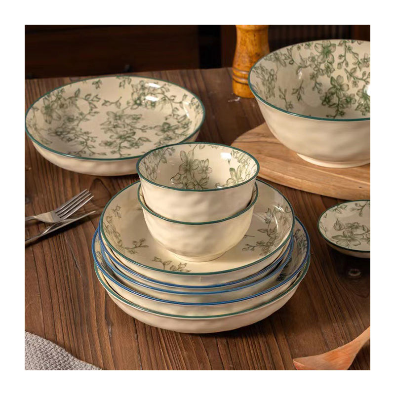 Luxury Green Ceramic Dinnerware Set with Customized Logo Off-the-Shelf Soup Bowl Plates