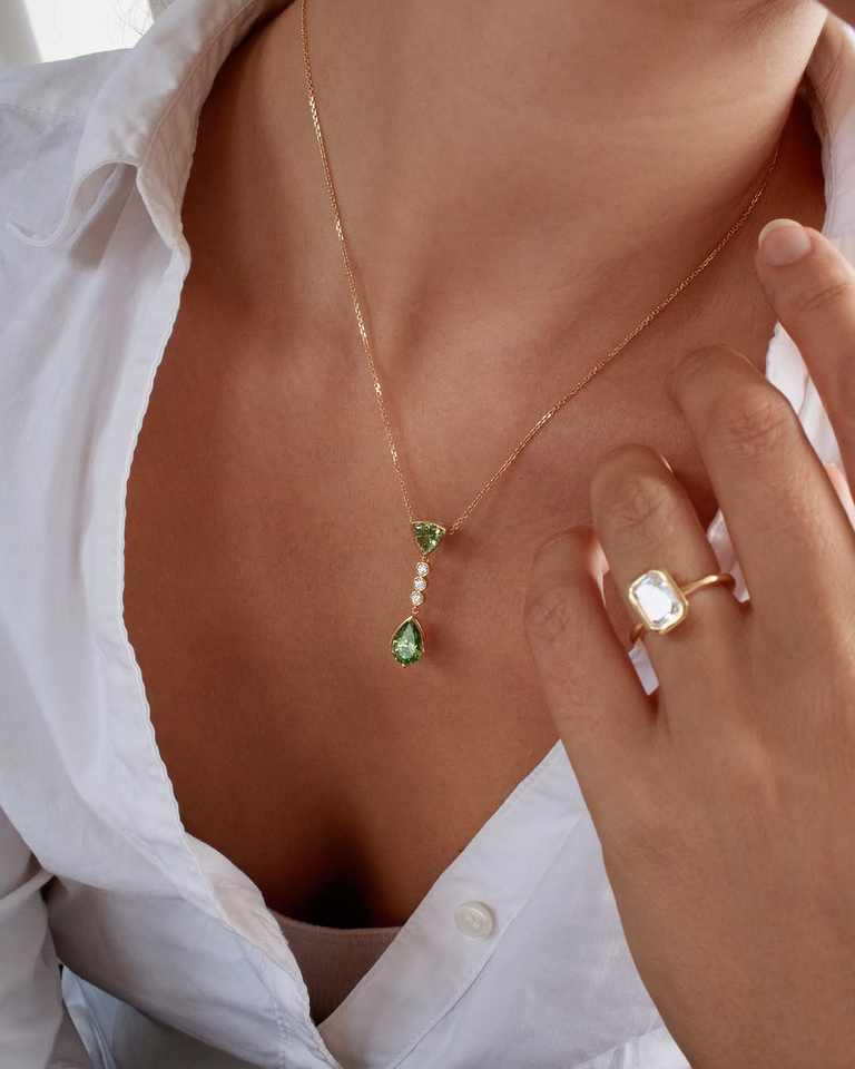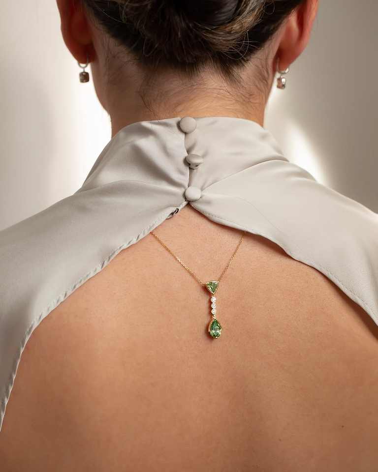 Luxury Green Diamond Drop Pendant Necklace 18k Solid Gold Diamond Accent IGI Certified Fine Jewelry for Women OEM ODM Wholesale