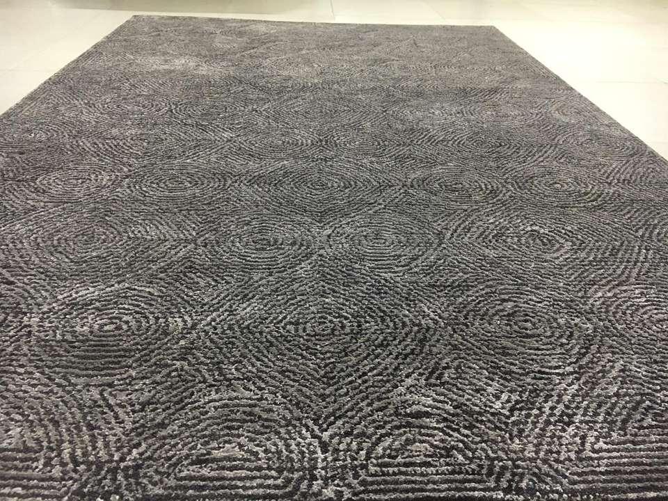 Luxury Grey Ripples Hand Tufted Silk Wool Rug Set Soft Elegant Indoor Modern Loop Pattern Cut Pile Anti-slip Backing Area Rugs