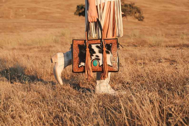 Luxury Gypsy Western Cow Leather Women's Luxury Sling Bag Turquoise Stone Hand Tooled Solitaire Design Ready to Stock Bags