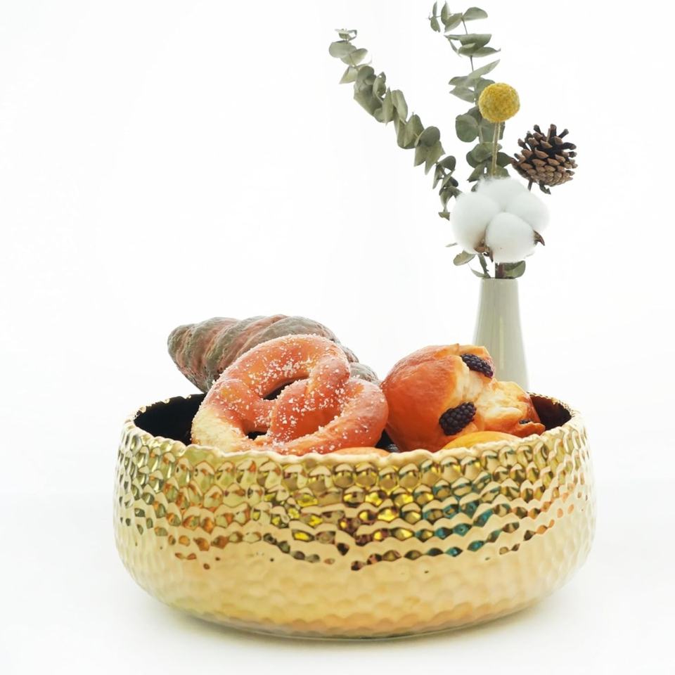 Luxury Hammered Gold Metal Bowl Decorative Fruit, Snack & Serving Bowl for Dining Table & Kitchen Decor
