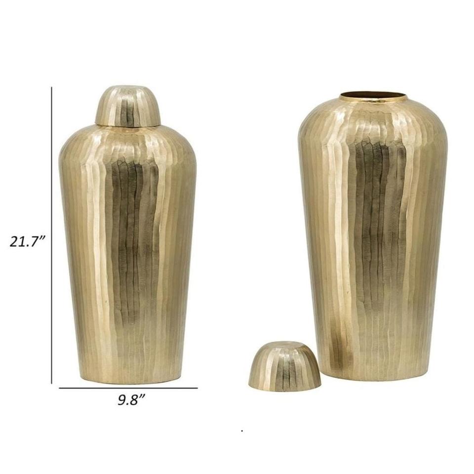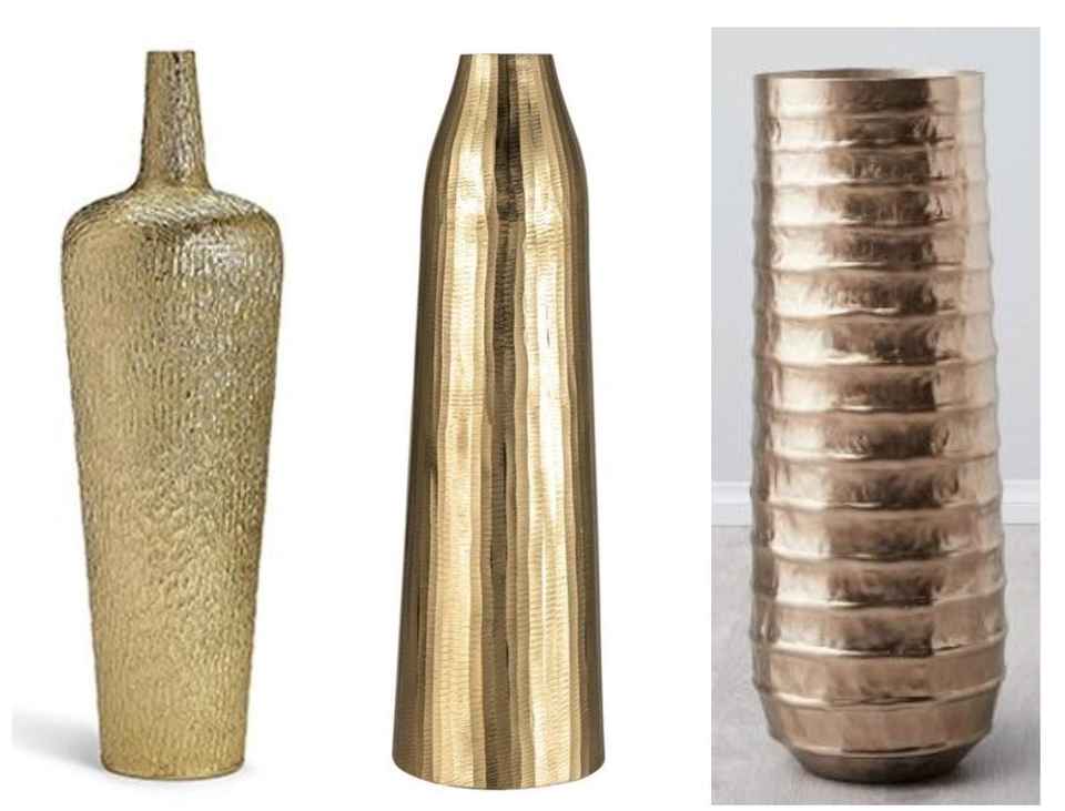 Luxury Hammered Gold Metal Vase Large Floor Standing Sculptural Piece for Hotel Lobby & Glam Interior Decor.