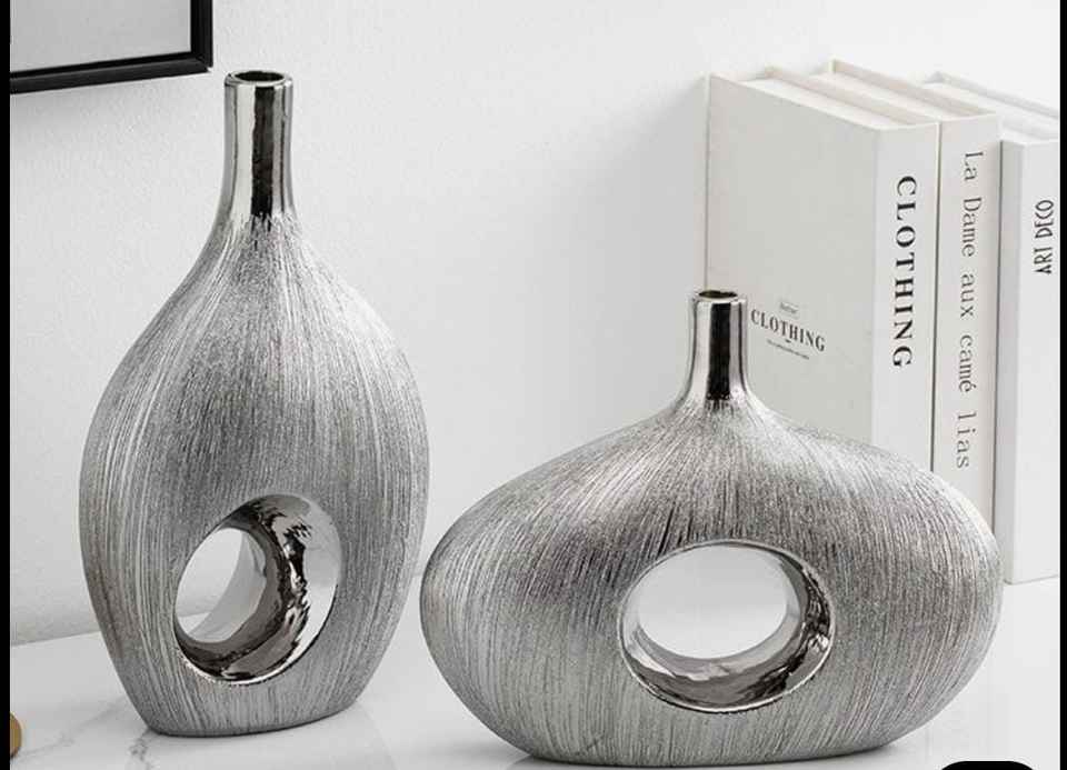 Luxury Hammered Metal Flower Vase Set Modern Textured Silver Aluminum Wedding Home Decor Handmade Eco-Friendly Customizable