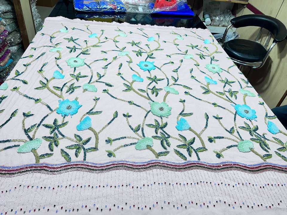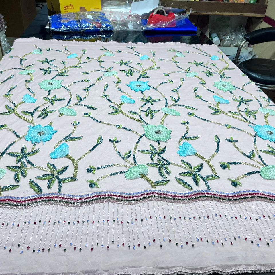 Luxury Hand Beaded Embroidered Net Fabric for Garments Woven Lace Used for Weddings