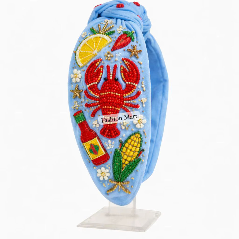 Luxury Hand Beaded Lobster Headband For Women Wholesale Embroidered Fashion Hair Accessories
