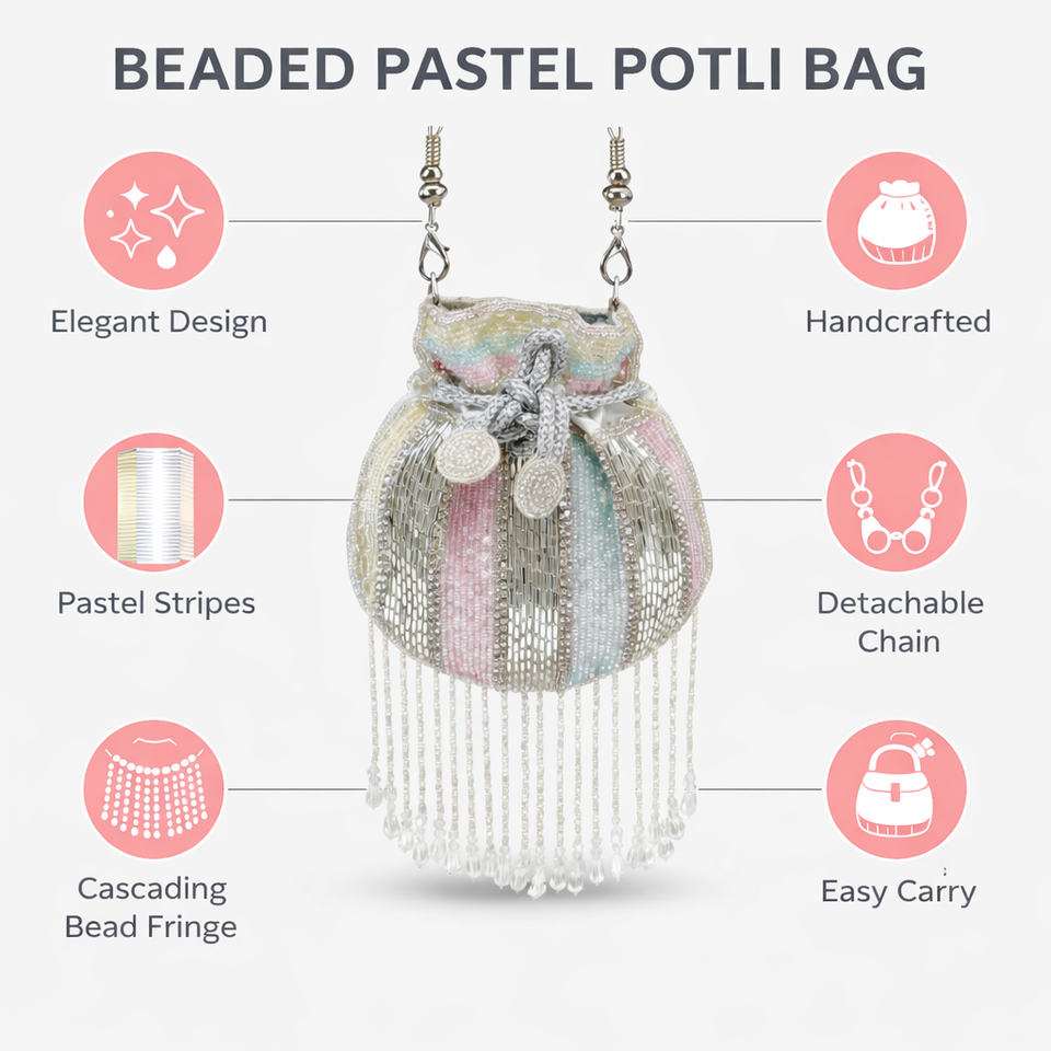 Luxury Hand-Beaded Tassel Potli Bag | Portable Spring Dressy Evening Clutch for Weddings & Parties | Wholesale Bridal Bag