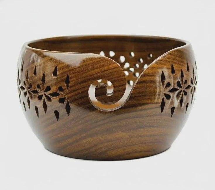 Luxury Hand Carved Wooden Crochet Yarn Bowl | Solid Wood Knitting Yarn Holder for Craft & Hobby Use