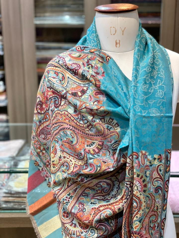 Luxury Hand Embroidered Kashmiri Wool Shawl in Elegant Color with Traditional Paisley Design for Winter and Party Wear