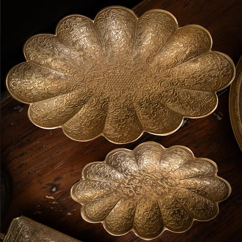 Luxury Hand Engraved Brass Dinnerware Set | Antique Finish Traditional Brass Thali Bowls and Serving Plates