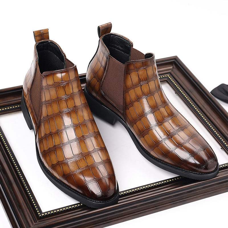 Luxury Hand Made Original Brown Formal Chelsea Western Classic PU Ankle Boots Slip on for Men Wholesale