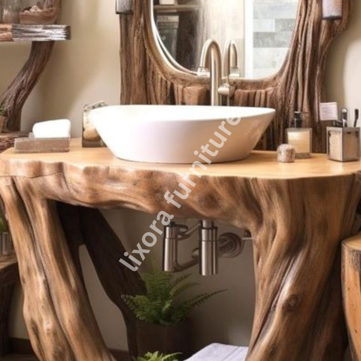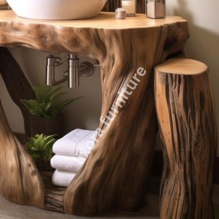 Luxury Handcrafted Tree Trunk Root Vanity Base Solid Wood Artistic Bathroom Console Natural Decor