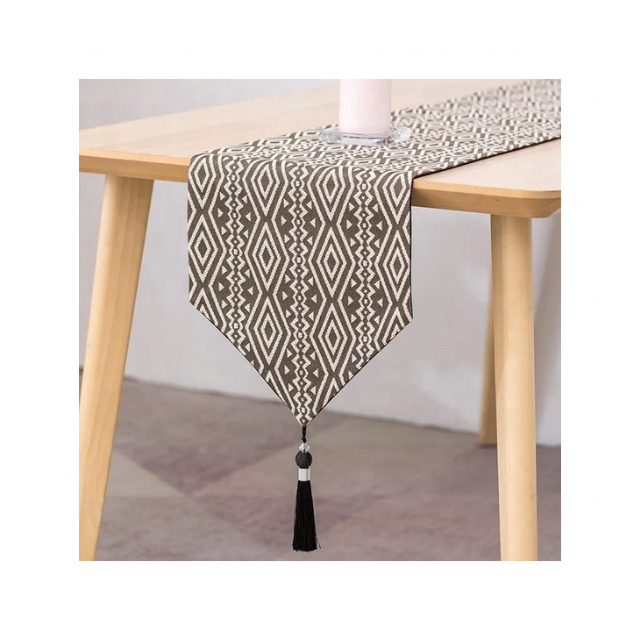 Luxury Handloomed Diamond 100% Cotton 280TC Twill Texture Washable Durable OEM ODM Customizable Dining Decor Tassel Table Runner