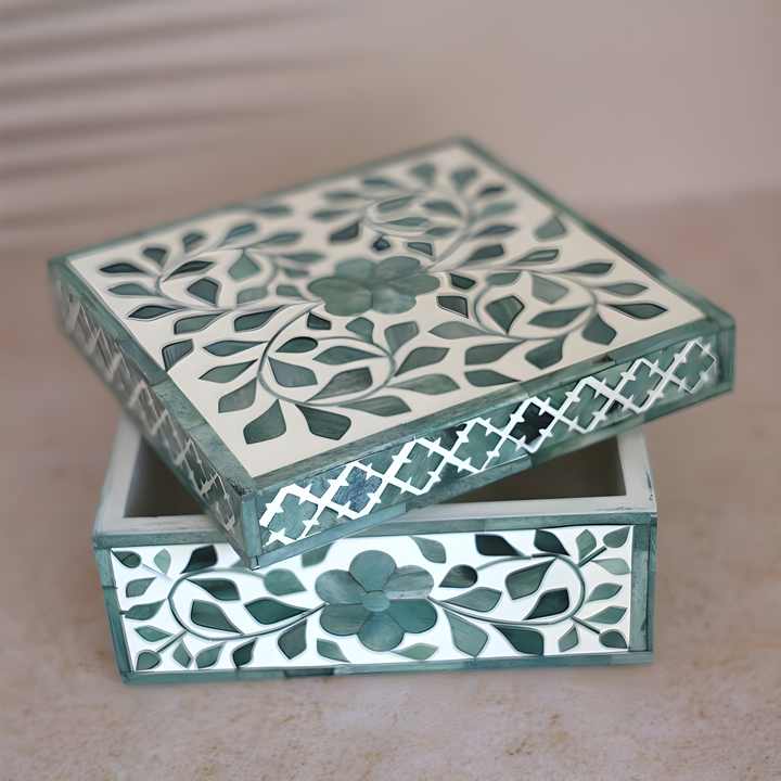Luxury Handmade Bone Inlay Jewelry Box Artisanal Vintage Decorative Storage for Home Decor Weddings Customizable Craftsmanship