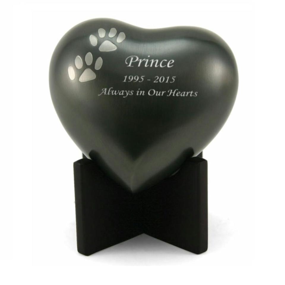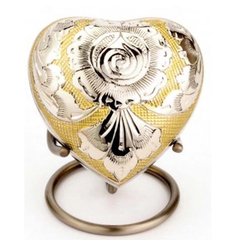 Luxury Handmade Brass Cremation Urn Heart-Shape Memorial Keepsake Display Stand Oval Engraved Design for Decorative Ashes.