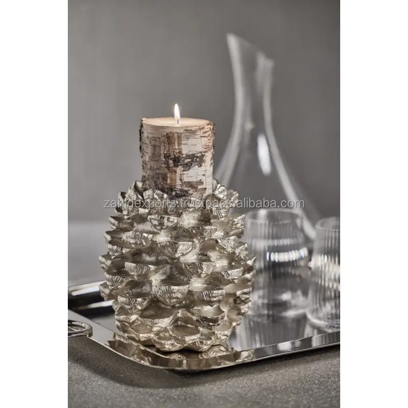Luxury Handmade Christmas Candlestick Holder with Natural Wood Finish Metal Contemporary Home Decor From Zahid Exports