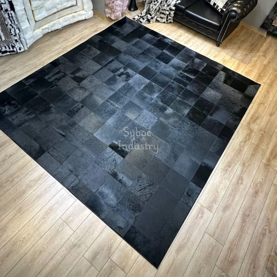 Luxury Handmade Cowhide Black Area Rug for Living Room Real Cowhide Hallway Carpet With High Quality Rug