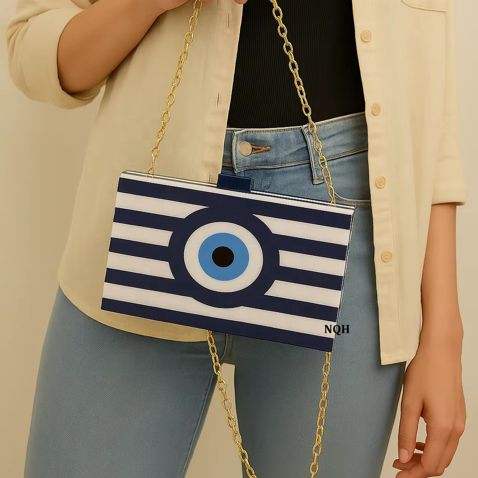 Luxury Handmade Durable Eco-Friendly Wood Resin Beading Clutch Geometric Inlay Design Crossbody Chain Purse Custom Logo