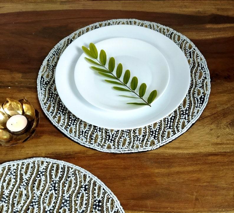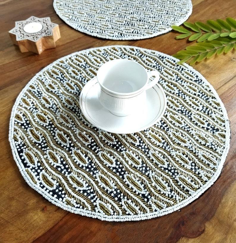 Luxury Handmade Embroidery Eco-Friendly Black Gold Beaded Placemats Boho Dining Table Mats Wedding Table Decor