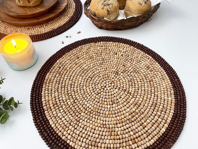 Luxury Handmade Embroidery Eco-Friendly Light Green Beaded Placemat for Dining Table Customizable High Quality Home Decor Low