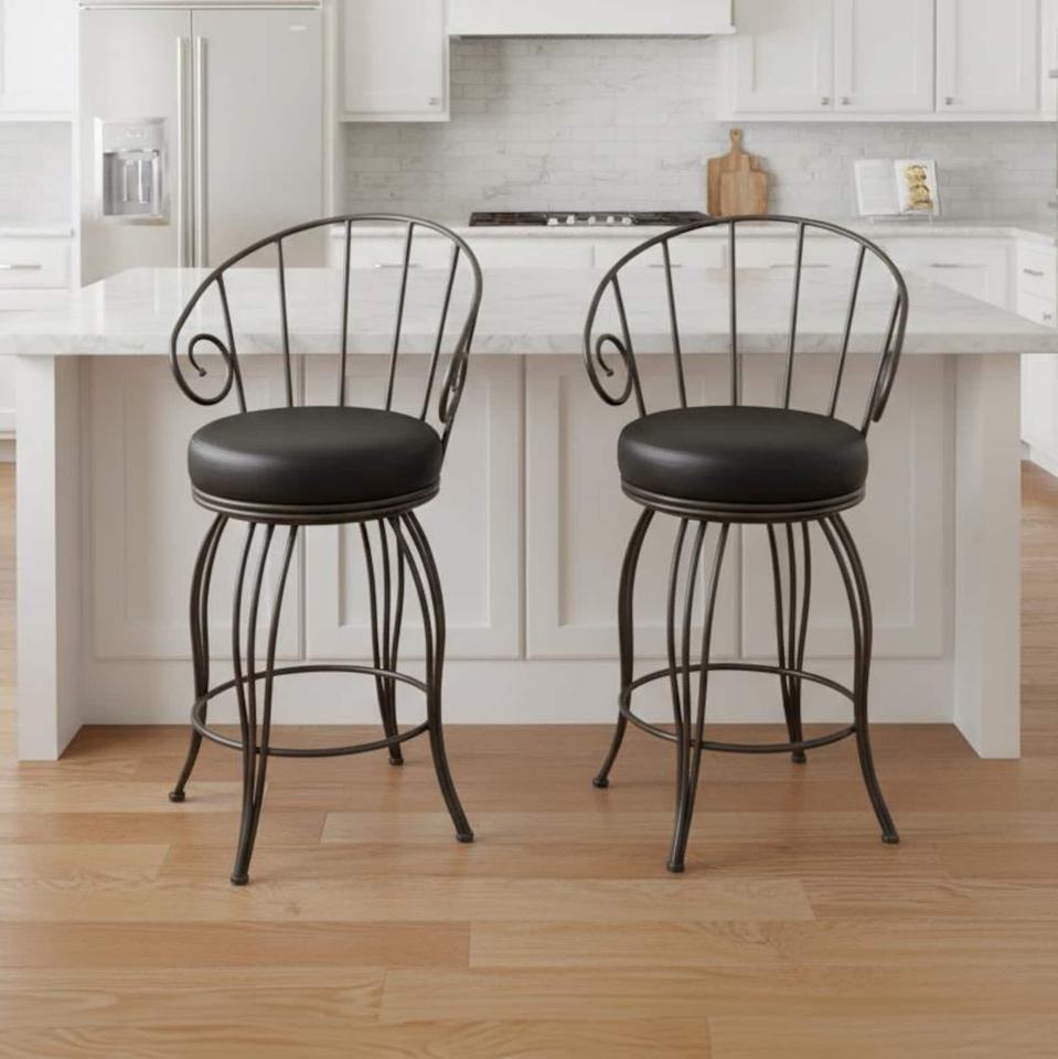 Luxury Handmade Hand Forged Iron and Leather Barstool Comfortable Padded Seat Artistic Metal Backrest Counter Height Seating