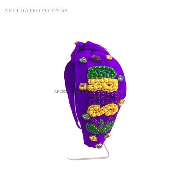 Luxury Handmade Mardi Gras Theme Headband Daily Wear Beaded Hair Accessory in Mamou Man Chicken Purple New Design for Party