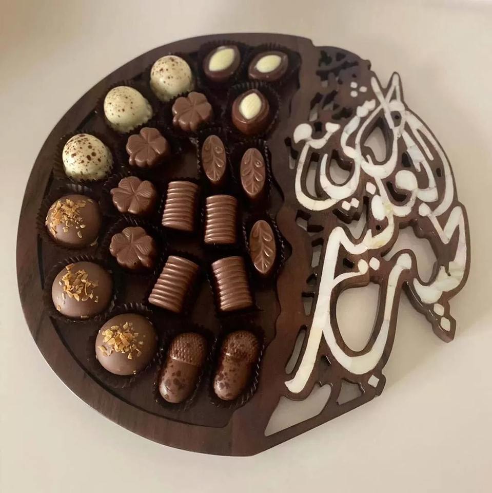 Luxury Handmade Mother of Pearl Acrylic Decorative Tray Artistic Chocolate & Dessert Serving Plate for Home, Ramadan Special