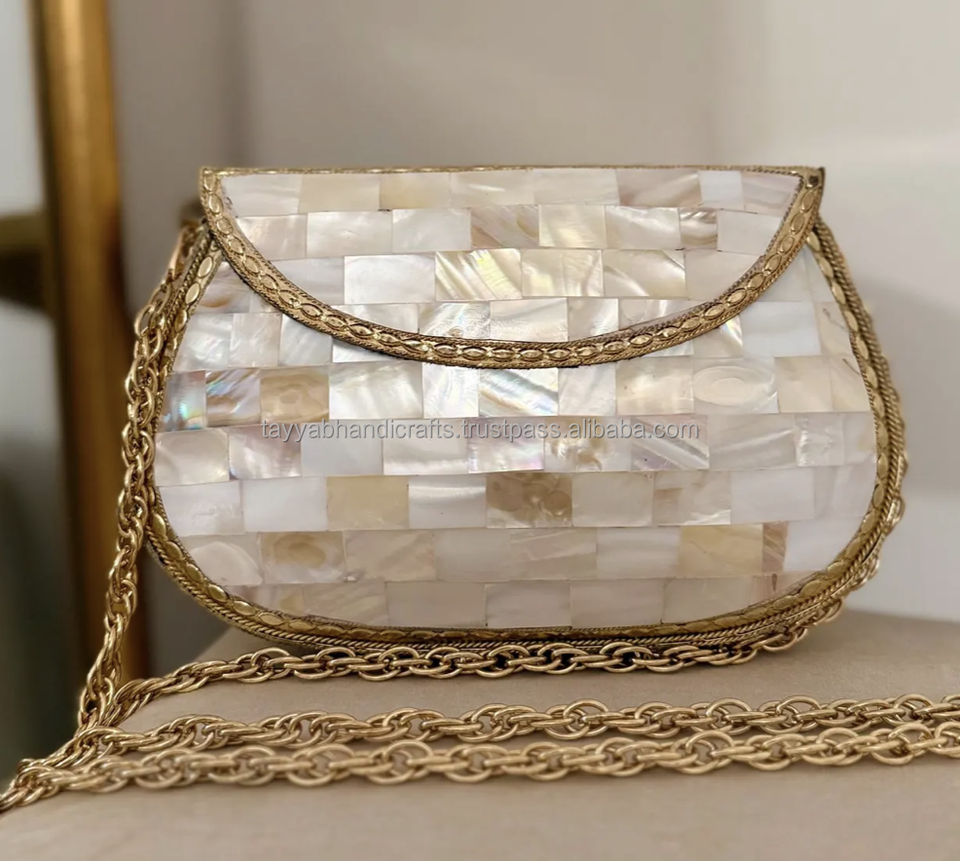 Luxury Handmade Mother of Pearl Clutch From India Perfect Evening Bag for Fashion Lady for Sale