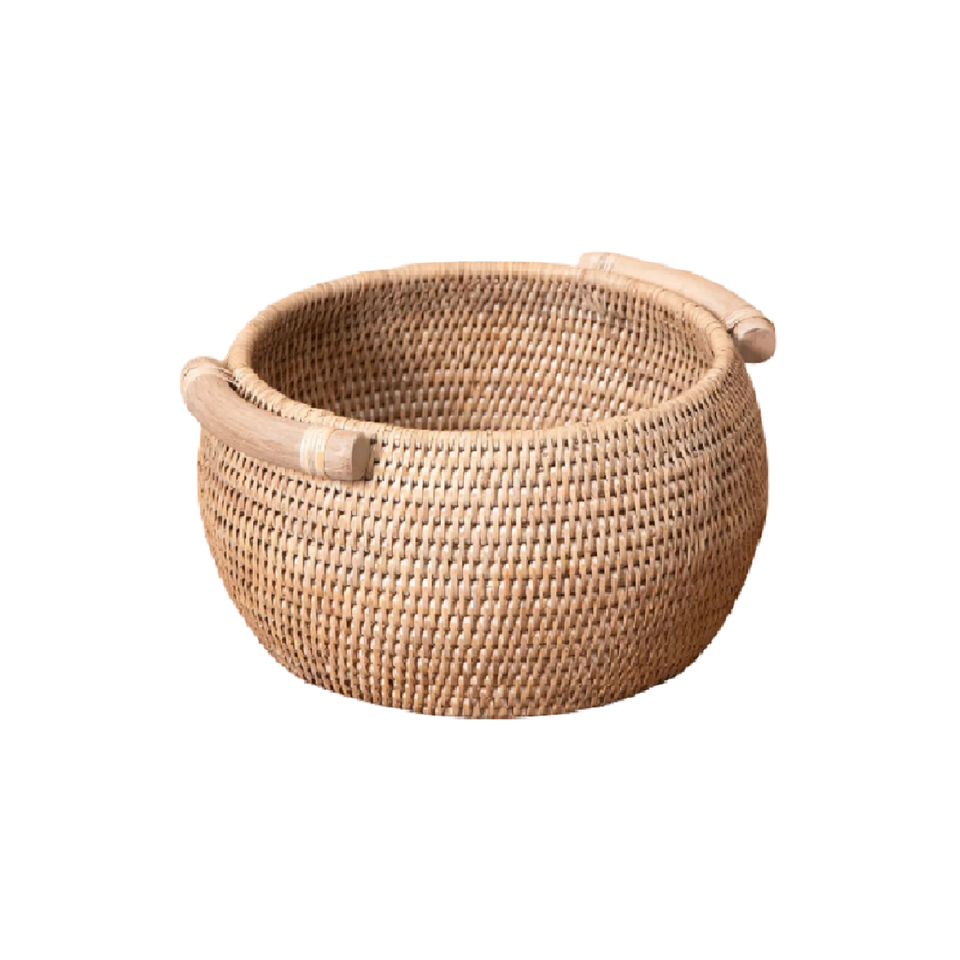 Luxury Handmade Rattan Wicker Planter Basket with Handle Round & Deep Shape Woven Storage Basket for Decoration
