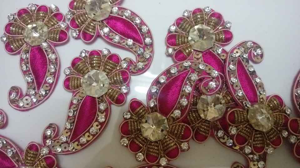 Luxury Handmade Red Crystal Beaded Patches Teardrop Floral Motif Couture Garments Clutches Bridal Accessories India Heart Canvas