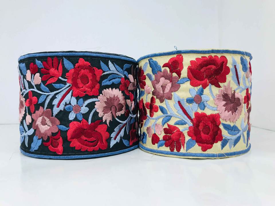 Luxury Handmade Red Rose Floral Embroidery Border Traditional & Romantic Style Sexy Ribbon Trim for Simple & Fancy Craft Apparel