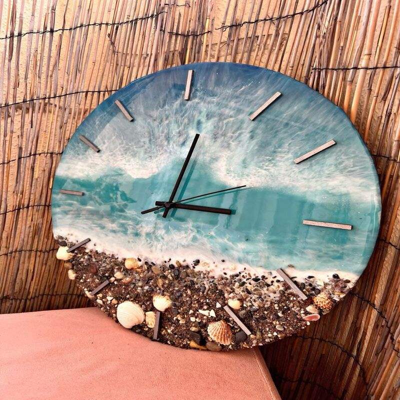 Luxury Handmade Resin Wall Clock Modern Design Artistic Needle Display Silent Sweep Movement for Home Office Living Room
