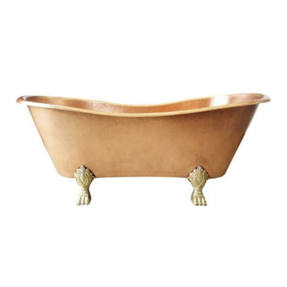 Luxury Handmade Eco-Friendly Soaking Copper Bathtub Antique Polished Hammered Finish Slipper Bath for Hotel and Home Bathroom