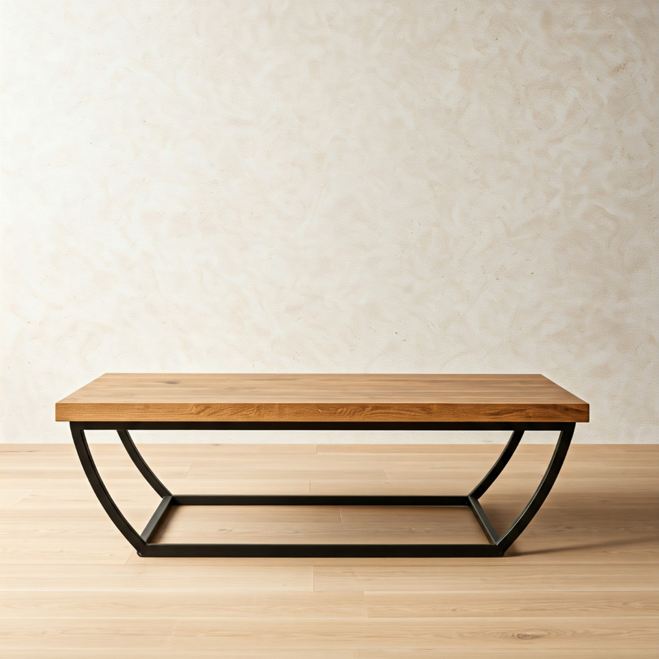 Luxury Handmade Solid Wood Coffee Table Contemporary Rustic Industrial Design with Durable Metal Base for Living Room or Office