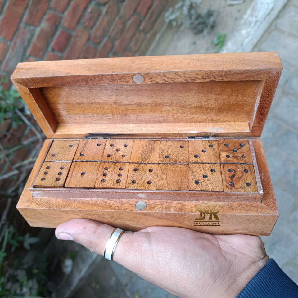 Luxury Handmade Eco-Friendly Mango Wood Domino Tiles Game Smooth Finish Solid Box Case Natural Crafts Travel Friendly Family