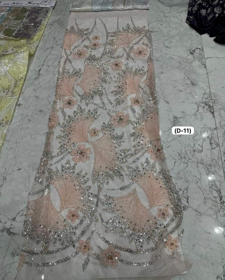 Luxury Handwork Beads Imported Ribbon Net Fabric Premium Designer Material for Gowns Dresses and Fashion Collections 2025