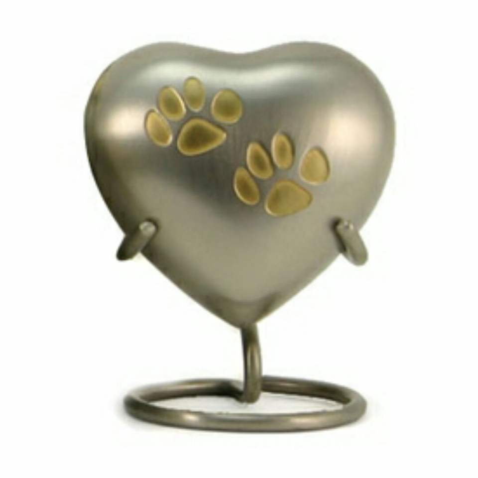 Luxury Heart-Shaped Brass Pet Cremation Urn Paw Print Memorial Keepsake Bulk Supply for Dog Cat Ashes for Pet Loss Retailers.