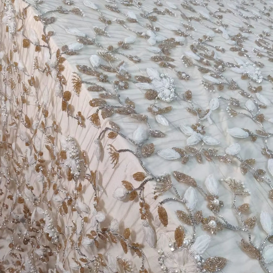 Luxury Heavyweight Woven Fabric Hand Beaded Embroidered Cross-Style Net Eco-Friendly Organic Weft Knitting for Accessory Use