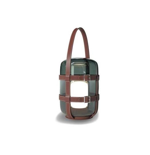 Luxury High End Decorative Glass Blue and Leather Strips Design Lantern Candle Lantern Home Decor Hotel Used