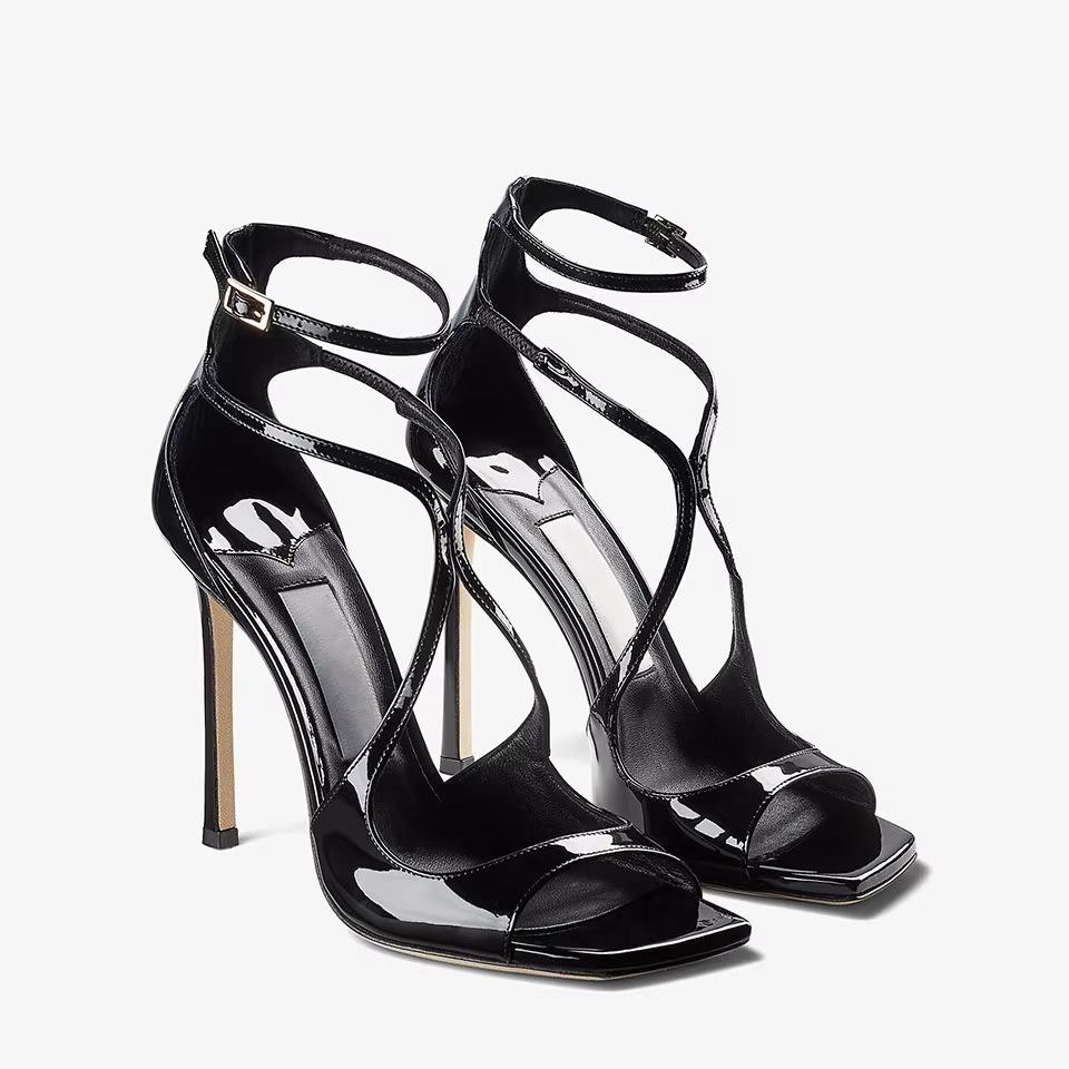 Luxury High Heel Platform Sandals Buckle Strap Rhinestone Decorations Thick Heel Barefoot Design Genuine Leather Microfiber