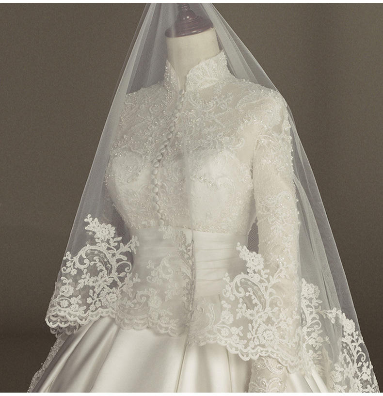 Luxury High Neck Beaded Pearl A-Line Long Wedding Dress for Girls Classic Satin Satin Lace Plus Size Bridal Gowns for Brides