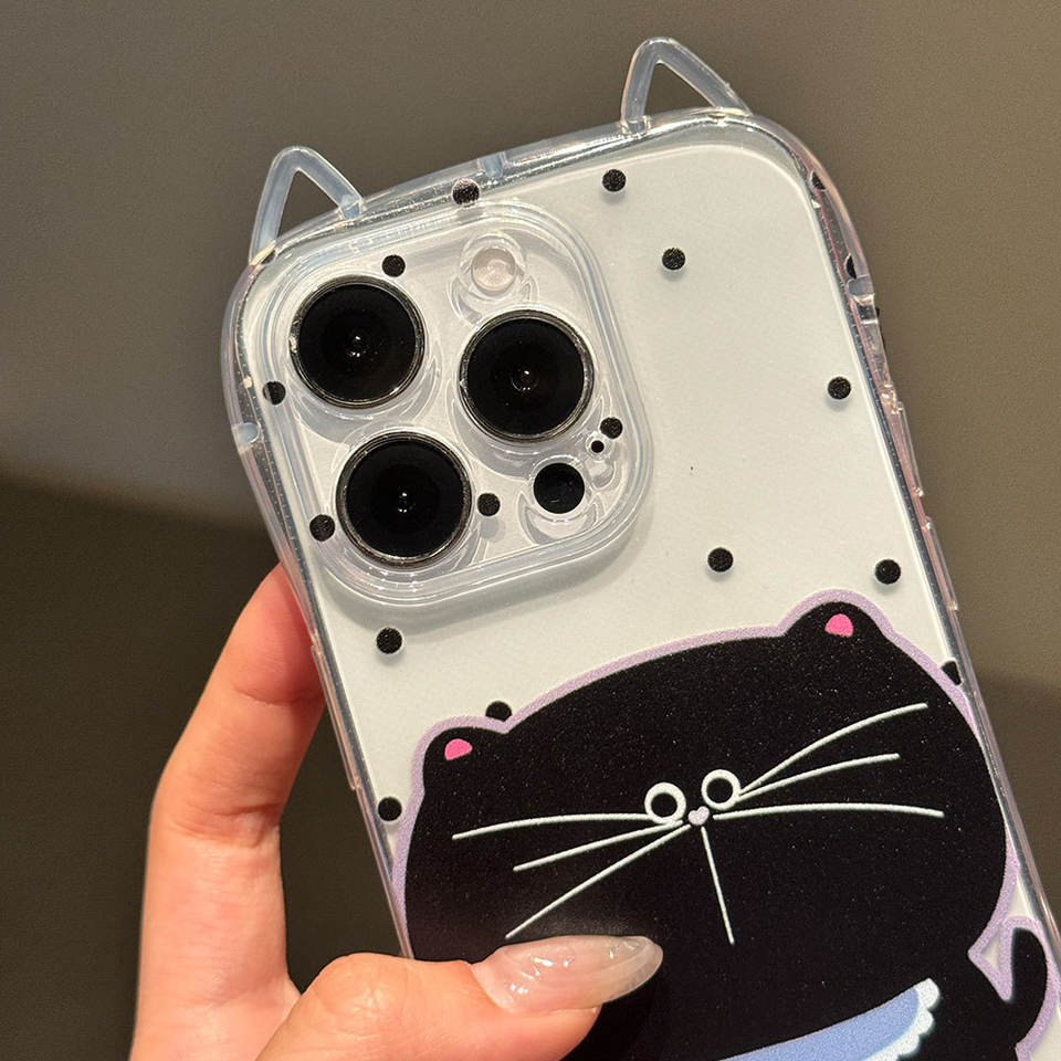 Luxury High Quality 3D Cat Ear Phone Case with Lanyard and Pendant 17promax 16promax Cute Holder PC Phone Cover 360 Protection
