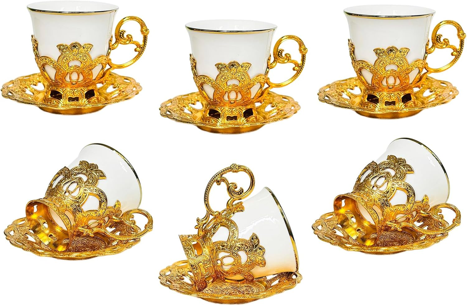 Luxury High Quality Ceramic Eco-Friendly 90ml Coffee Tea Cup Saucer Gift Set 12pcs Turkish Coffee Set (Customized Color) Instant