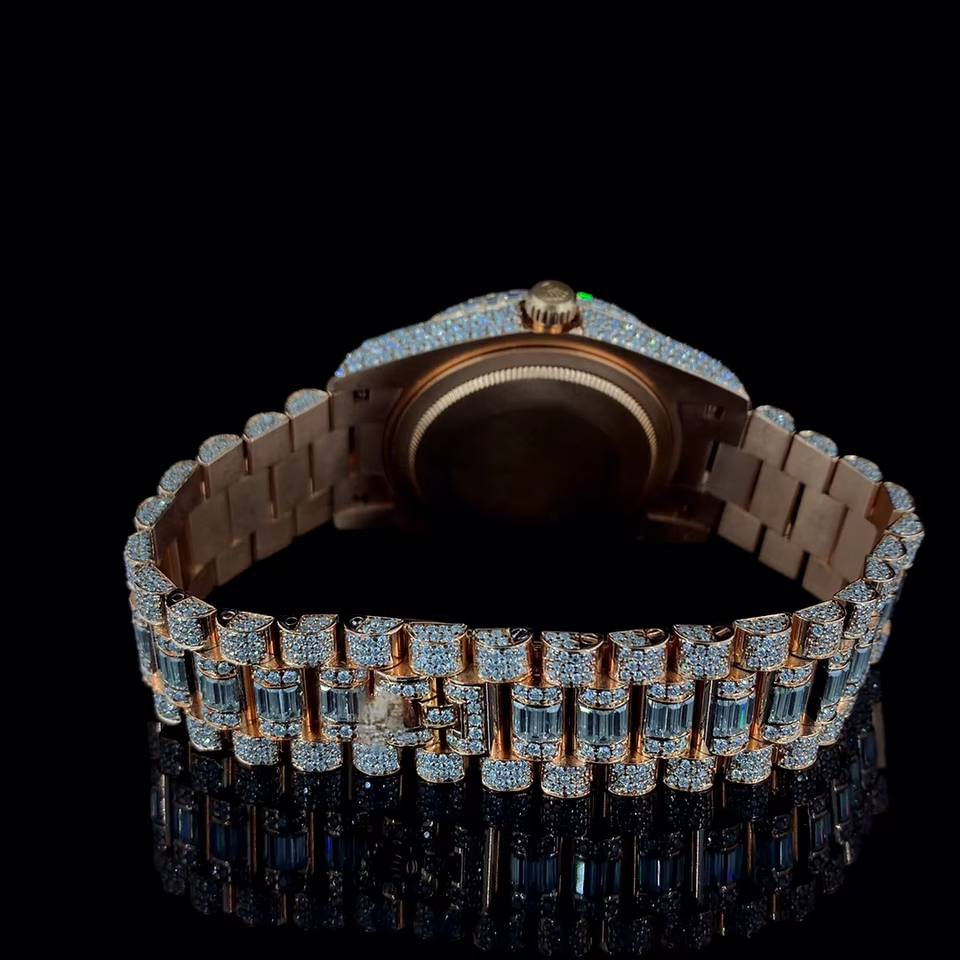 Luxury High Quality Fully Iced Out VVS Moissanite Diamond Two Tone Green Dial Rhinestone Indices Hip Hop Style Men's Watch